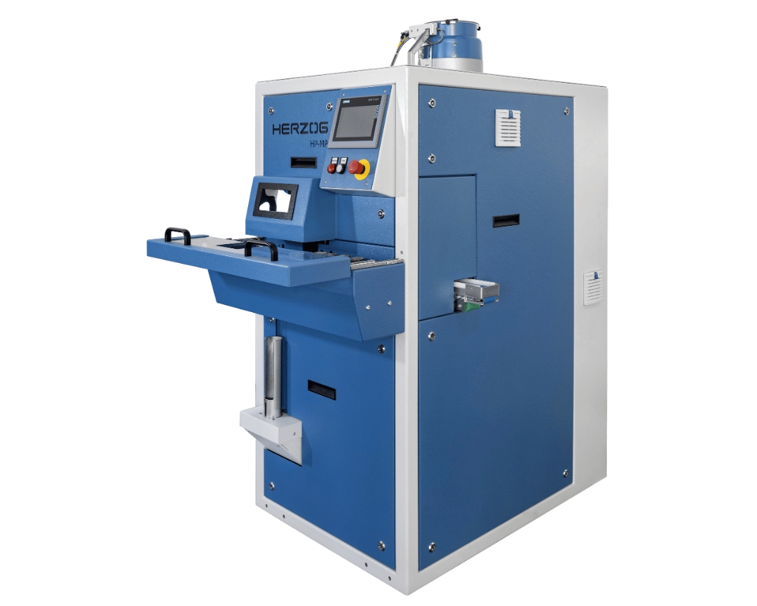 Stand-alone configuration - High priority was the design of a versatile machine that is deployable in many different configurations. As a stand- alone machine, the HP-MP can be operated with an input and output device where the operator inserts a single cup and removes the pressed pellet. As an option, a 23-position-magazine is available to allow automatic batch processing of samples. The prepared pressed pellets are collected in an output magazine attached to the side of the machine. As a matter of choice for the operator, the cup can be returned empty to the magazine or filled with retained sample material for further sample processing or analysis.