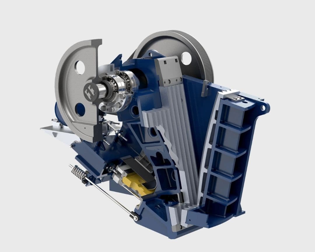 V-belt drive with good accessibility for easy maintenance. Generously dimensioned flywheels allow the use of smaller electric motors while maintaining high crushing energy, contributing to lower installed power and reduced energy cost per tonne crushed.