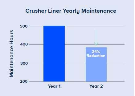 When visiting the site, the FLS team discovered that the crusher feed contained a very high percentage of fines, which intensified wear. The liners would lose the crusher OSS Setting very quickly, and consequently, each concave campaign required an average of five sets of mantles. Site was purchasing their liners from a 3rd party company, who was not able to provide an optimal solution to the ever-increasing cost of maintenance and parts and subsequently reached out to FLS to review their operation.